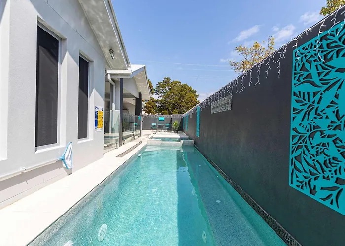 Cette villa de 4 chambres se trouve à 10 minutes en voiture de Bribe Island National Park et à 15 minutes en voiture du Port de plaisance Spinnaker Sound Marina. Cet établissement Villa Bribie Breeze Family Retreat With Pool & Bbq est niché non loin d'attractions naturelles comme Buckleys Hole Conservation Park.